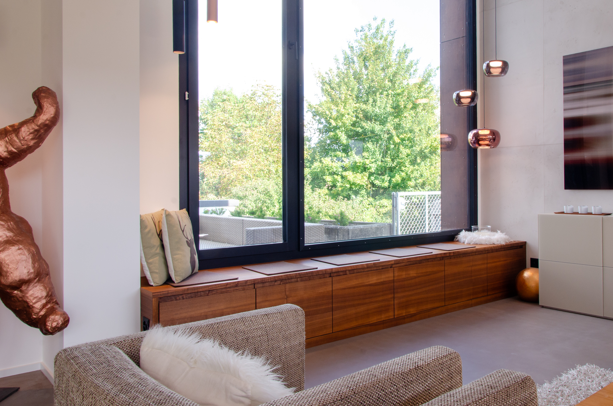 Für unseren Kunden in Rothenhausen durften wir eine massgefertigte Garderobe, eine praktische Sideboard-Sitzbank und einen stilvollen Ankleideschrank realisieren. Alles wurde optimal auf den Raum und die Bedürfnisse unserer Kunden abgestimmt. Die Möbelstücke verbinden Funktionalität mit Design und fügen sich harmonisch in das bestehende Wohnkonzept ein.